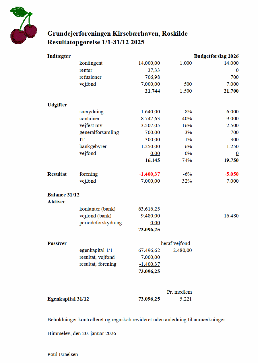 Forelæggelse af budget og fastlæggelse af kontingent for det kommende år